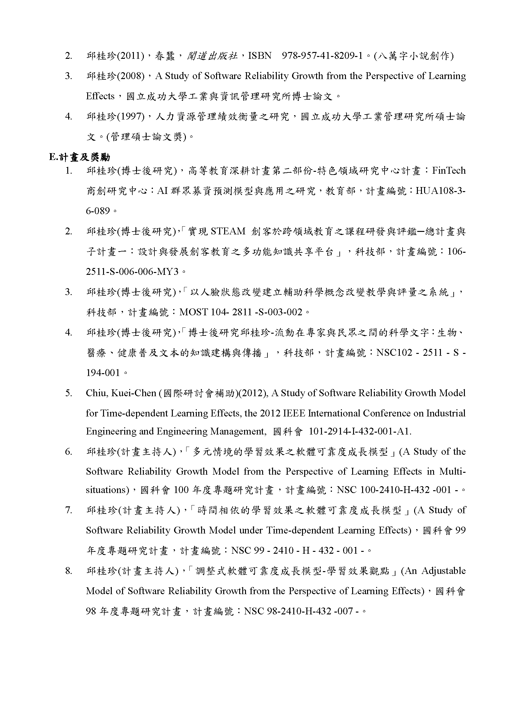 副教授 邱桂珍 (Kuei-Chen Chiu)